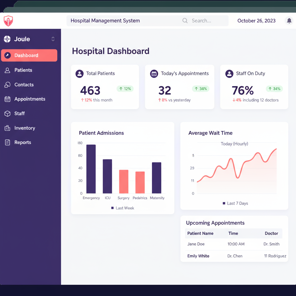 Manage patient care, coordinate hospital operations, and stay efficient with streamlined tools that give you clarity, control, and peace of mind every day.